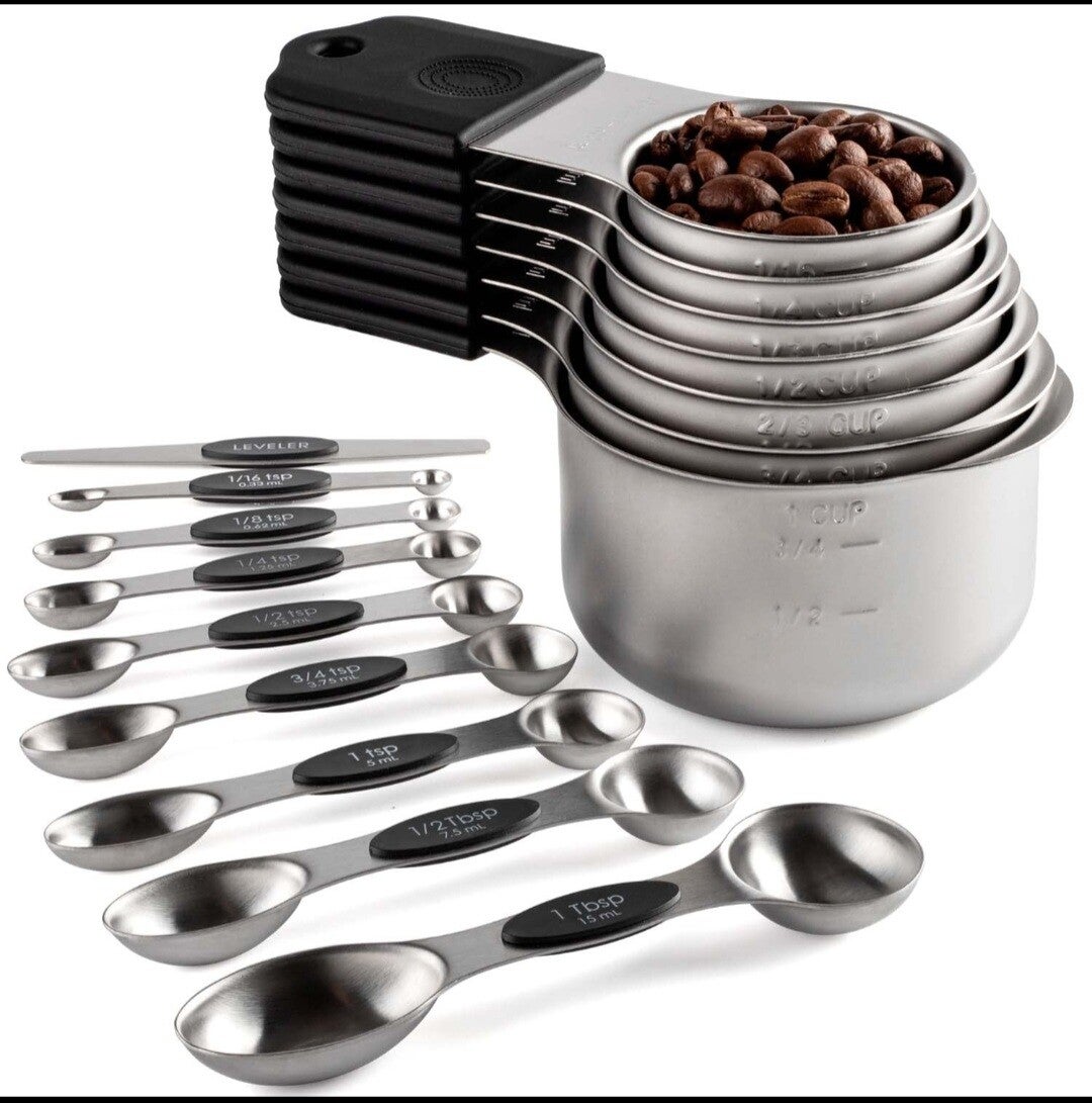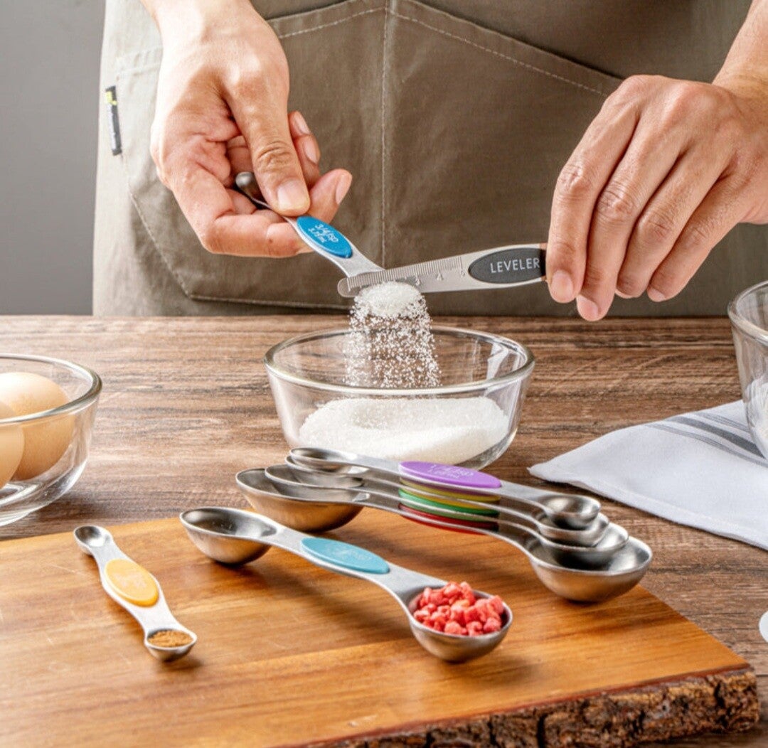 Neat, magnetic, double-ended spoons that stack and store compactly.
